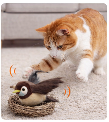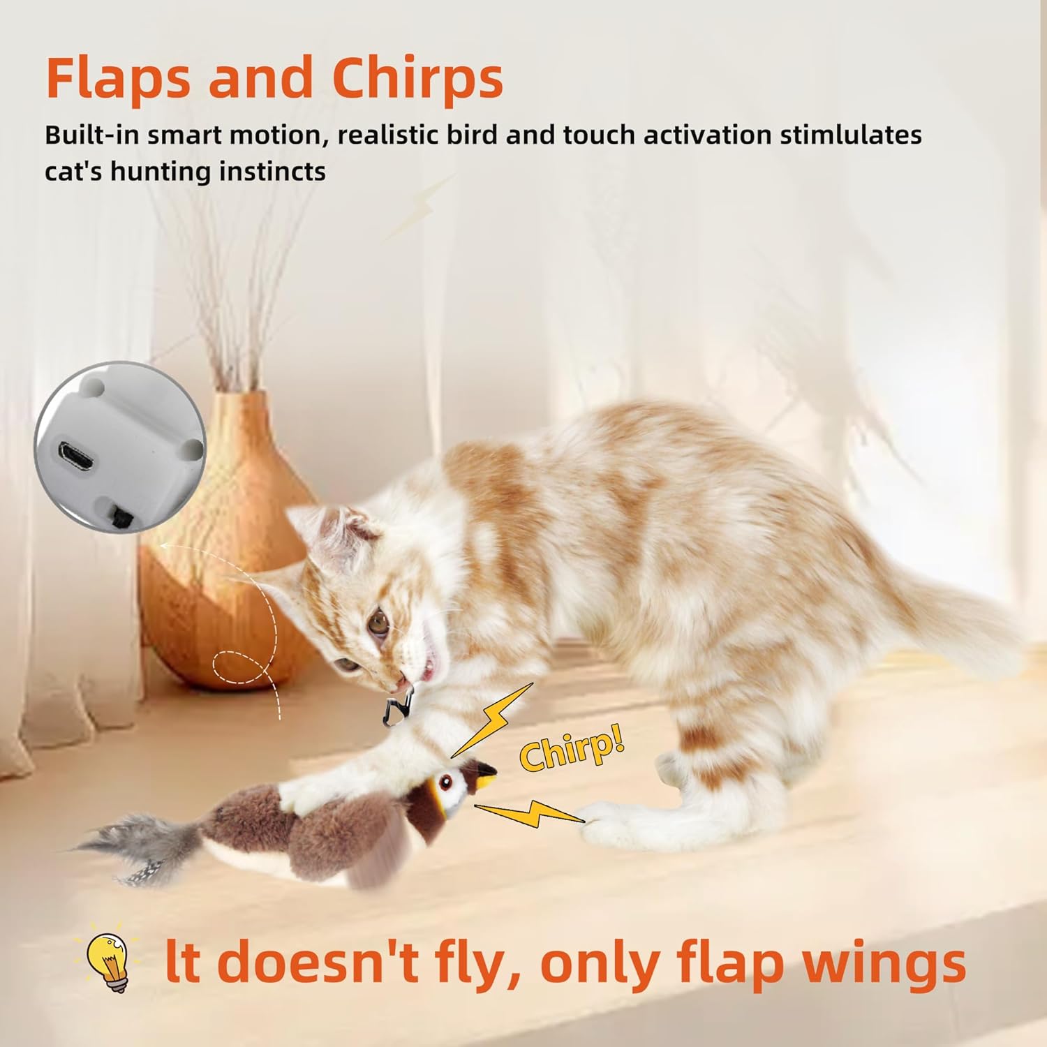 The toy has a built-in motion sensor. When your cat touches it, the wings start flapping automatically to attract attention.